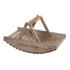 - The trug has a slatted bottom and a wooden handle for carrying.
