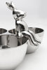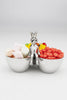 - It features three bowls for holding snacks, sweets, chutneys, nuts, crisps, dips and condiments.