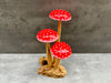 • The driftwood base features 3 hand-carved mushrooms "growing" from it.
